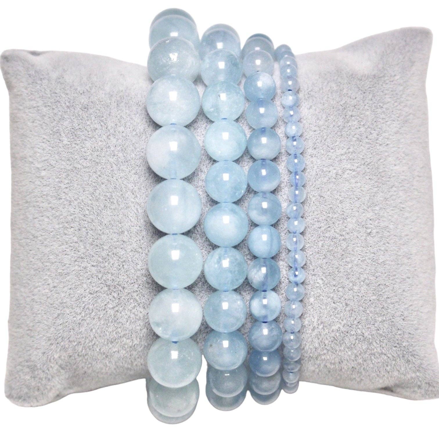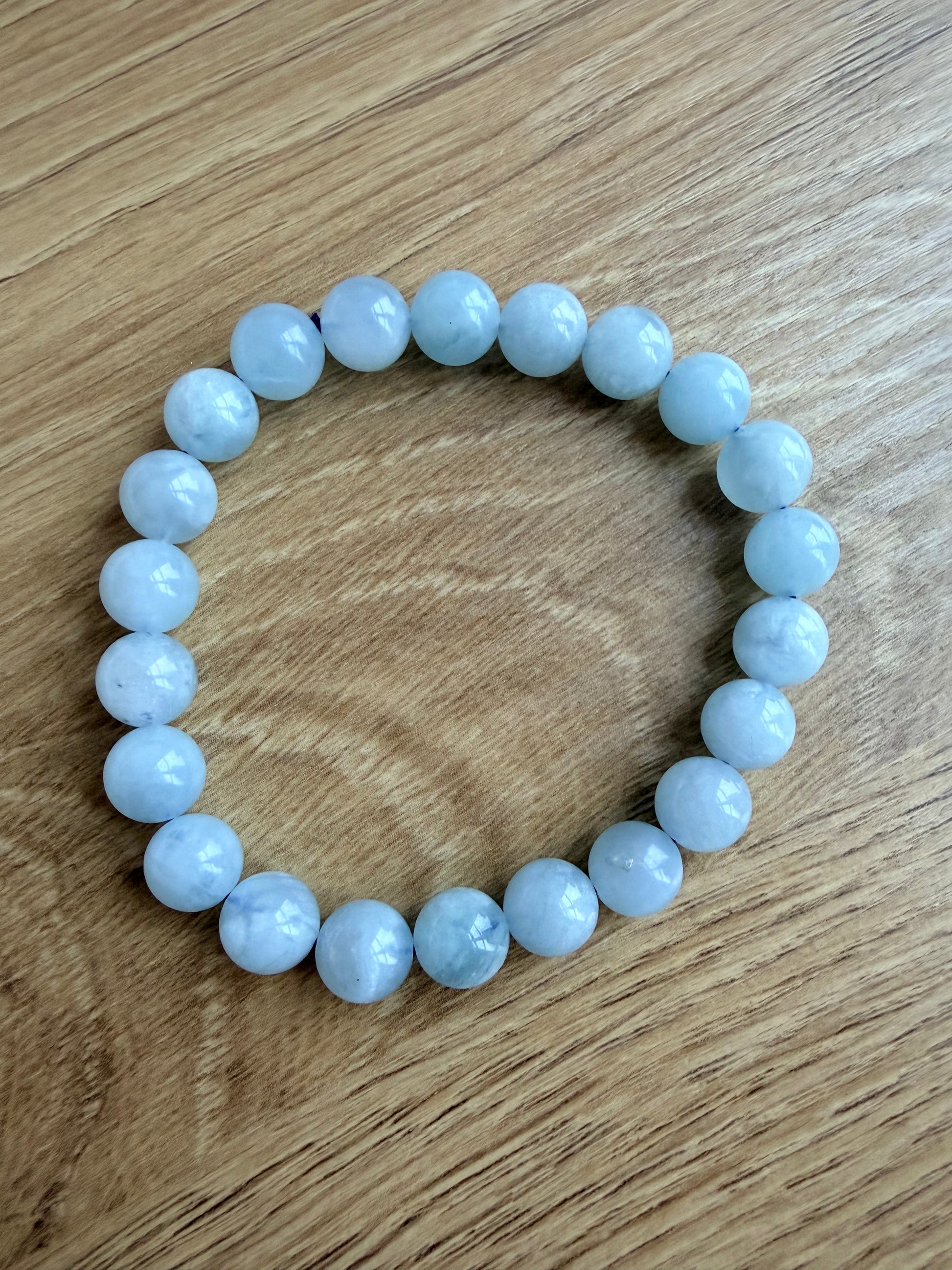 Dette elegante armbånd er skabt af naturlig akvamarin (A-kvalitet), kendt for sine bløde, havblå nuancer og sin rene, klare energi. Akvamarin har gennem århundreder været forbundet med ro, klarhed og følelsesmæssig balance. Stenen har et let, frisk udtryk, der gør armbåndet både tidløst og harmonisk.
