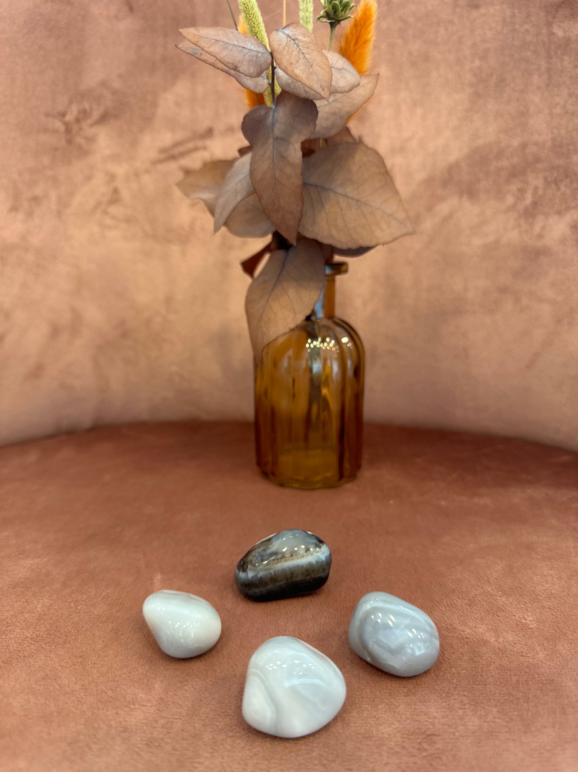 Agat kan fåes i mange farver, som hver har deres betydning. Agat er også en krystal, som har en jordnær, mild og blød energi.