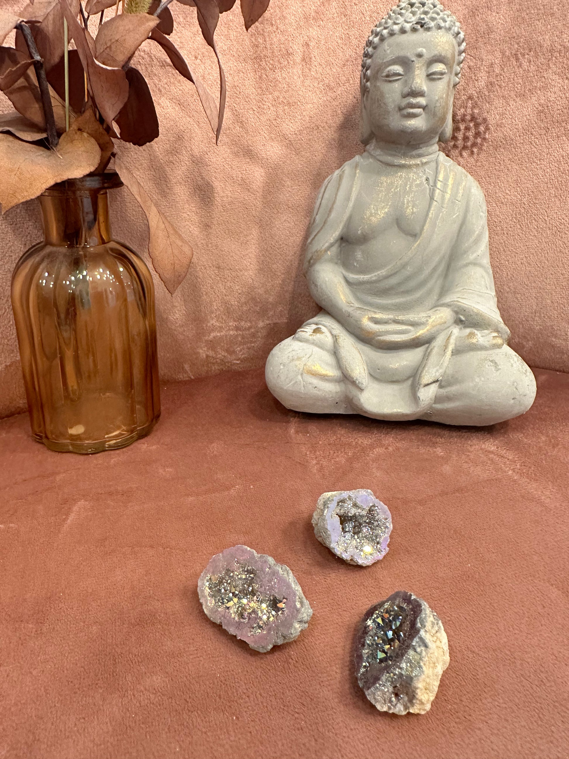 Angel Aura Quartz har sød og omsorgsfuld energi, som effektivt kan stimulere og forstærke dine følelser. Dette er en effektiv aura-rens og giver dig mulighed for at falde ind i en tilstand af fred og ro.