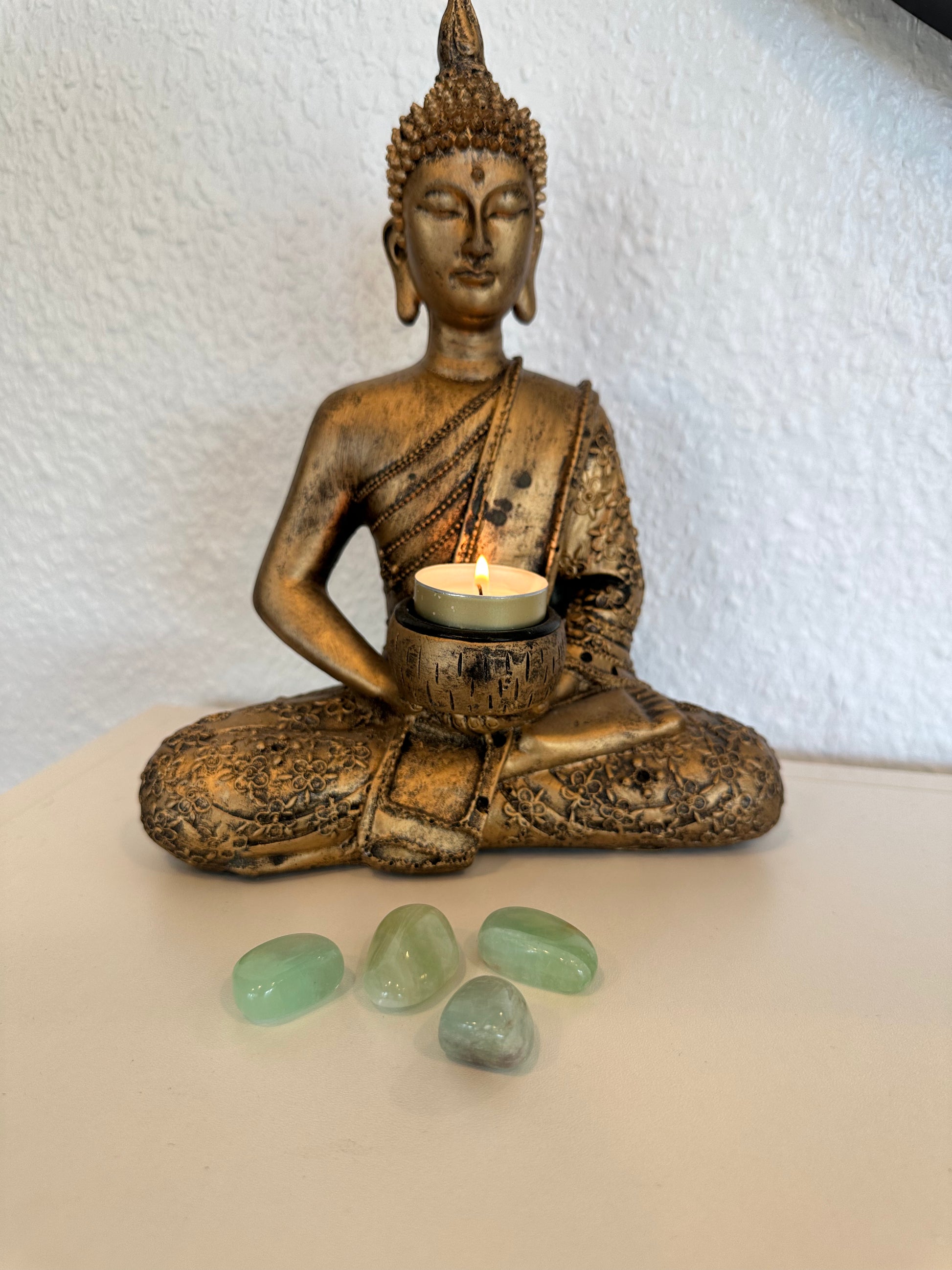 Flotte Smaragdgrøn Calcit som lommesten - også kaldet for hjertesten.