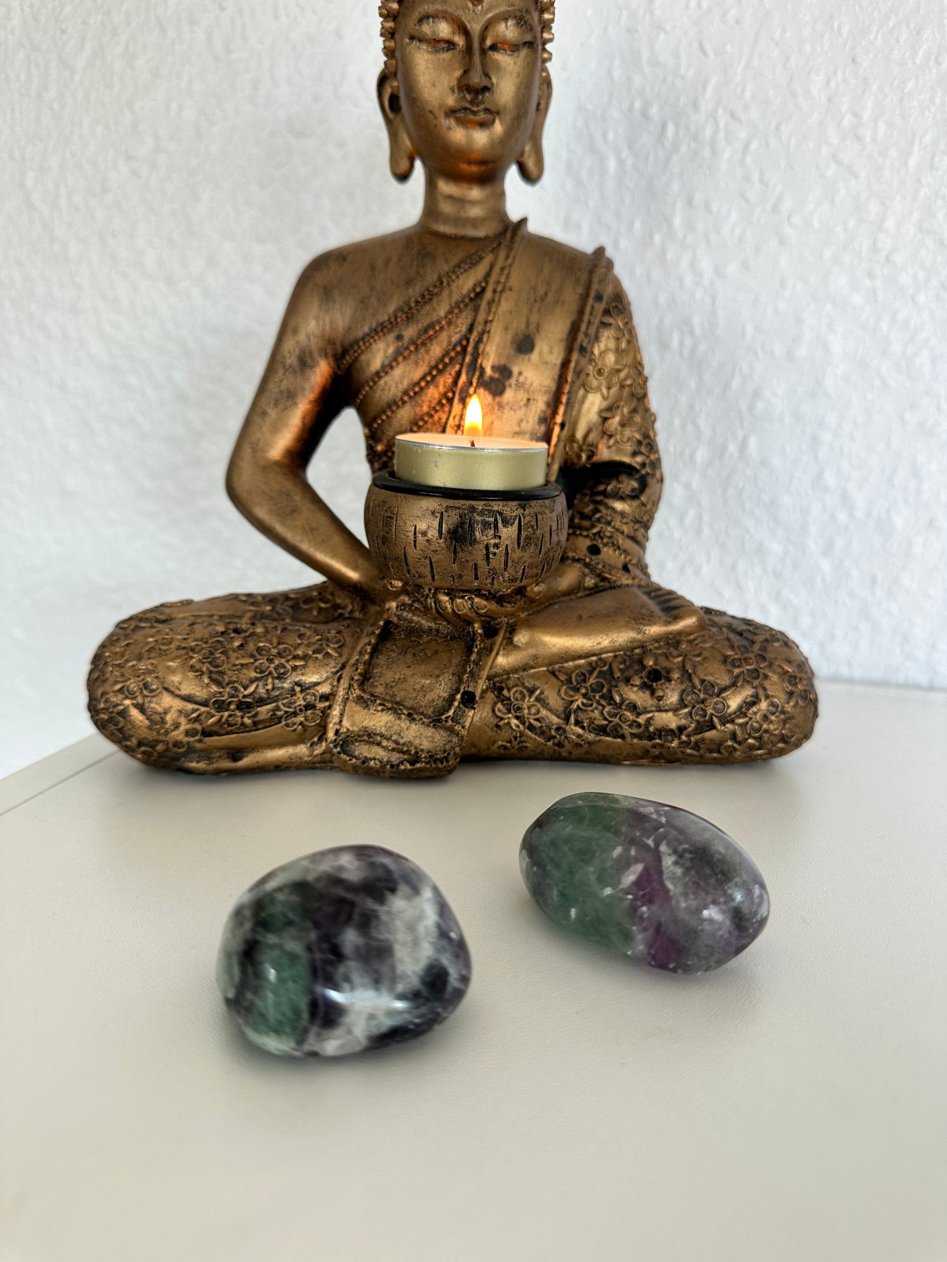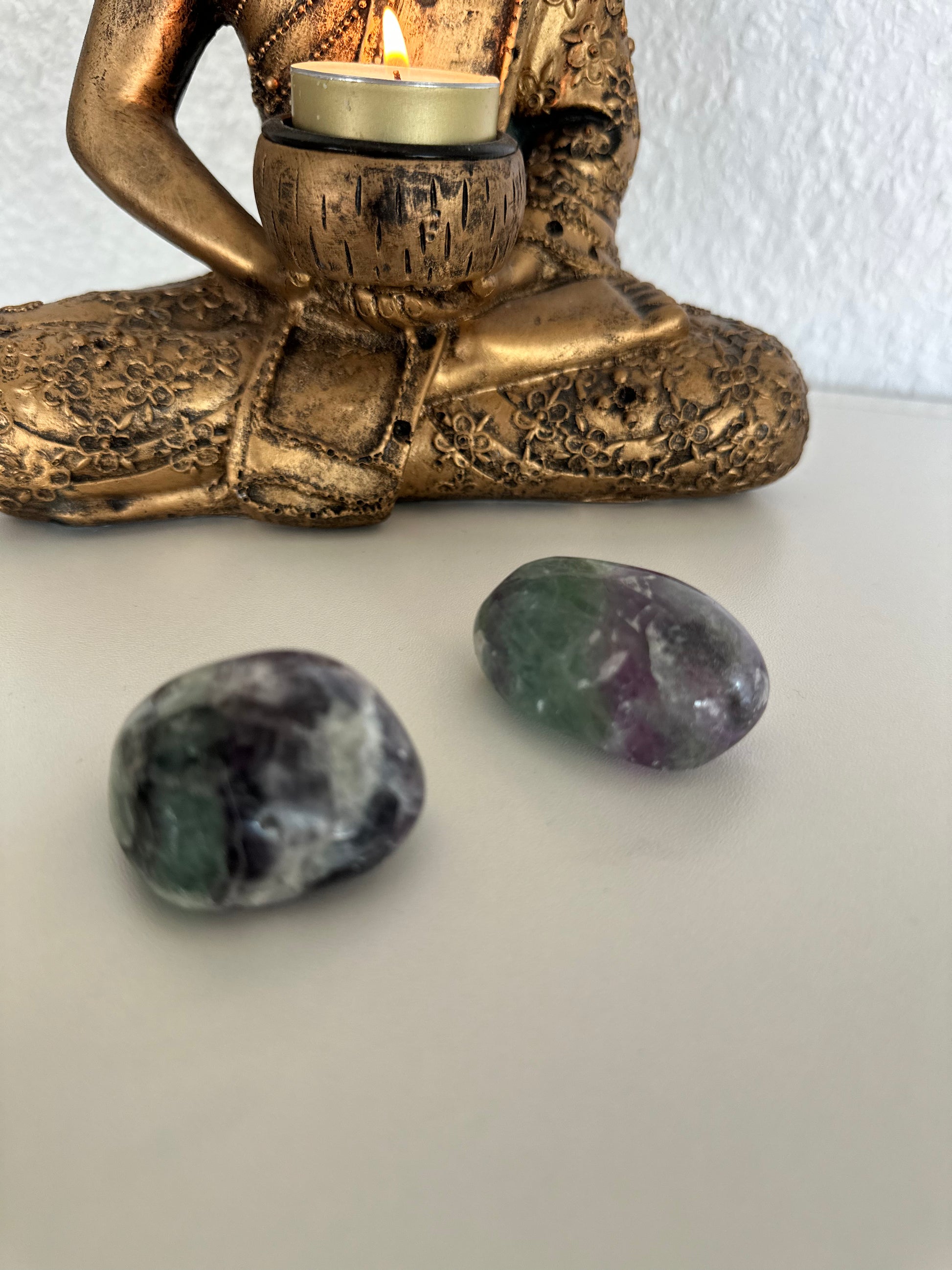 Lilla Fluorit stimulerer dit tredje øje, bringer dit sind og din psyke fornuft, og støtter dig i at leve og arbejde udefra realistiske mål.