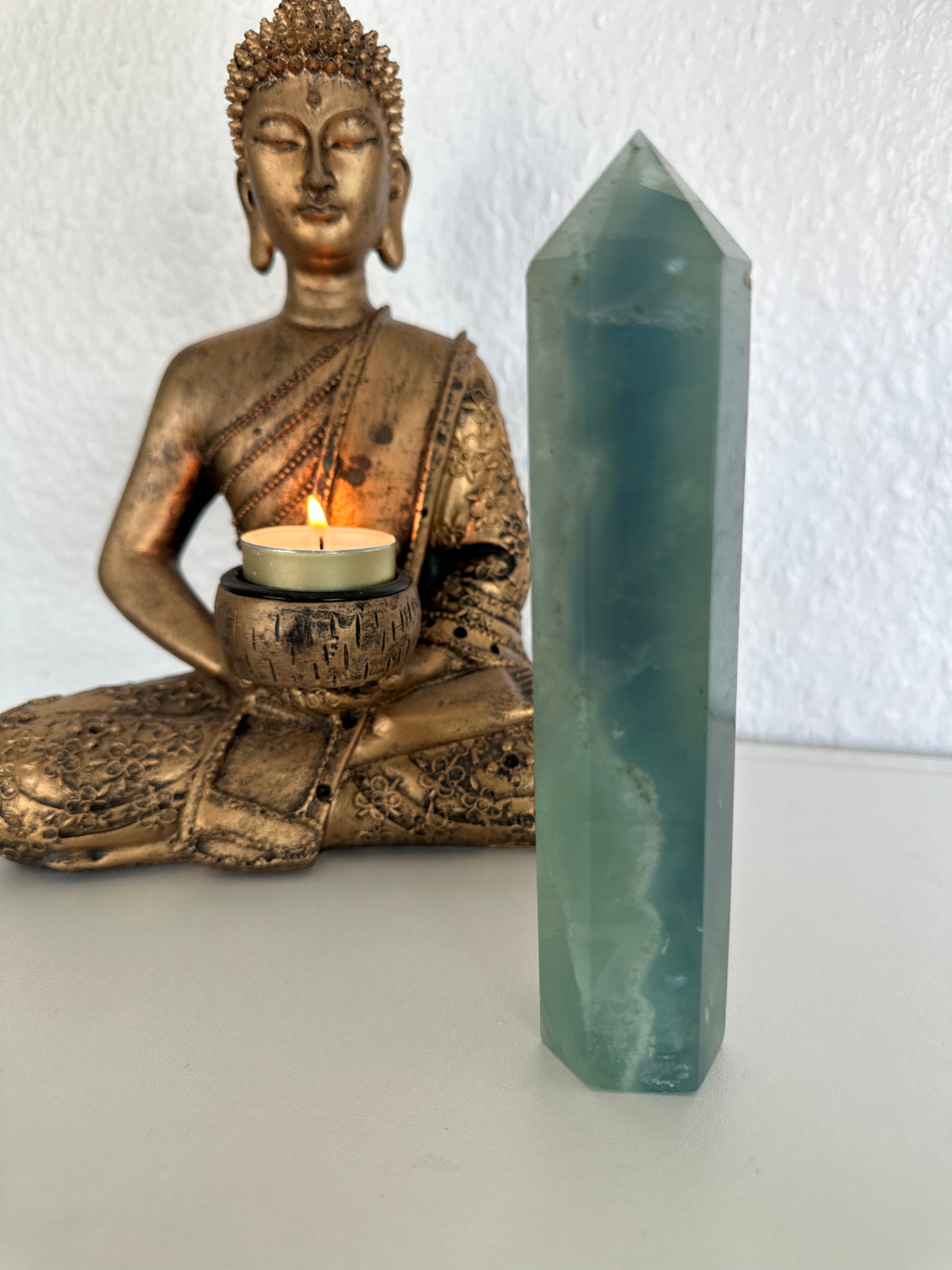 Grøn Fluorit renser din aura, sind og chakraer, grounder dine energier og styrker din intuition, så du kan handle i overensstemmelse med dit indre.