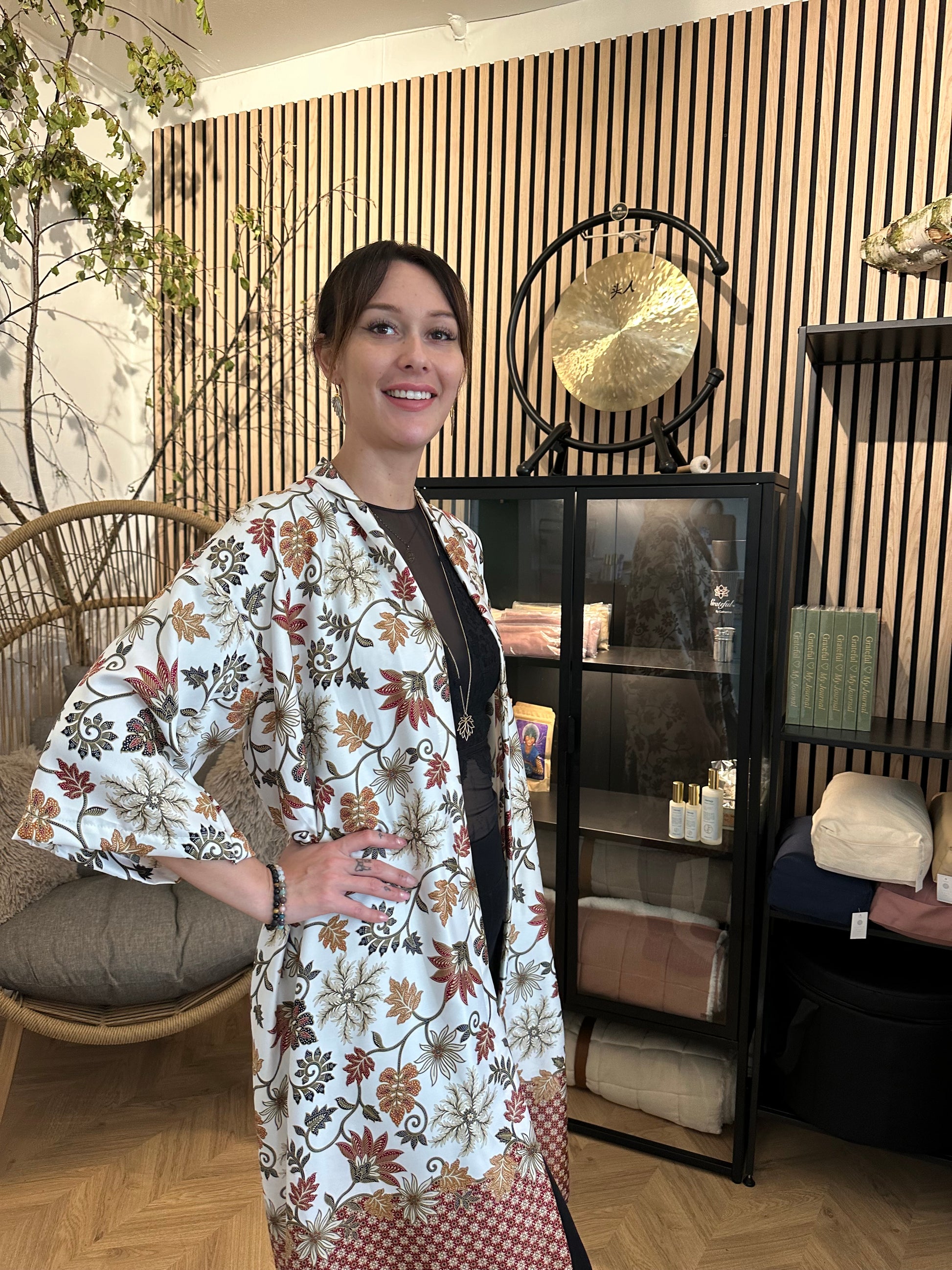 Alle vores kimonoer er købt direkte på Bali primært ved familier, som syer deres ting selv i deres butik. Oftes er deres butik kombineret med deres hjem, hvor hele familien hjælper til.