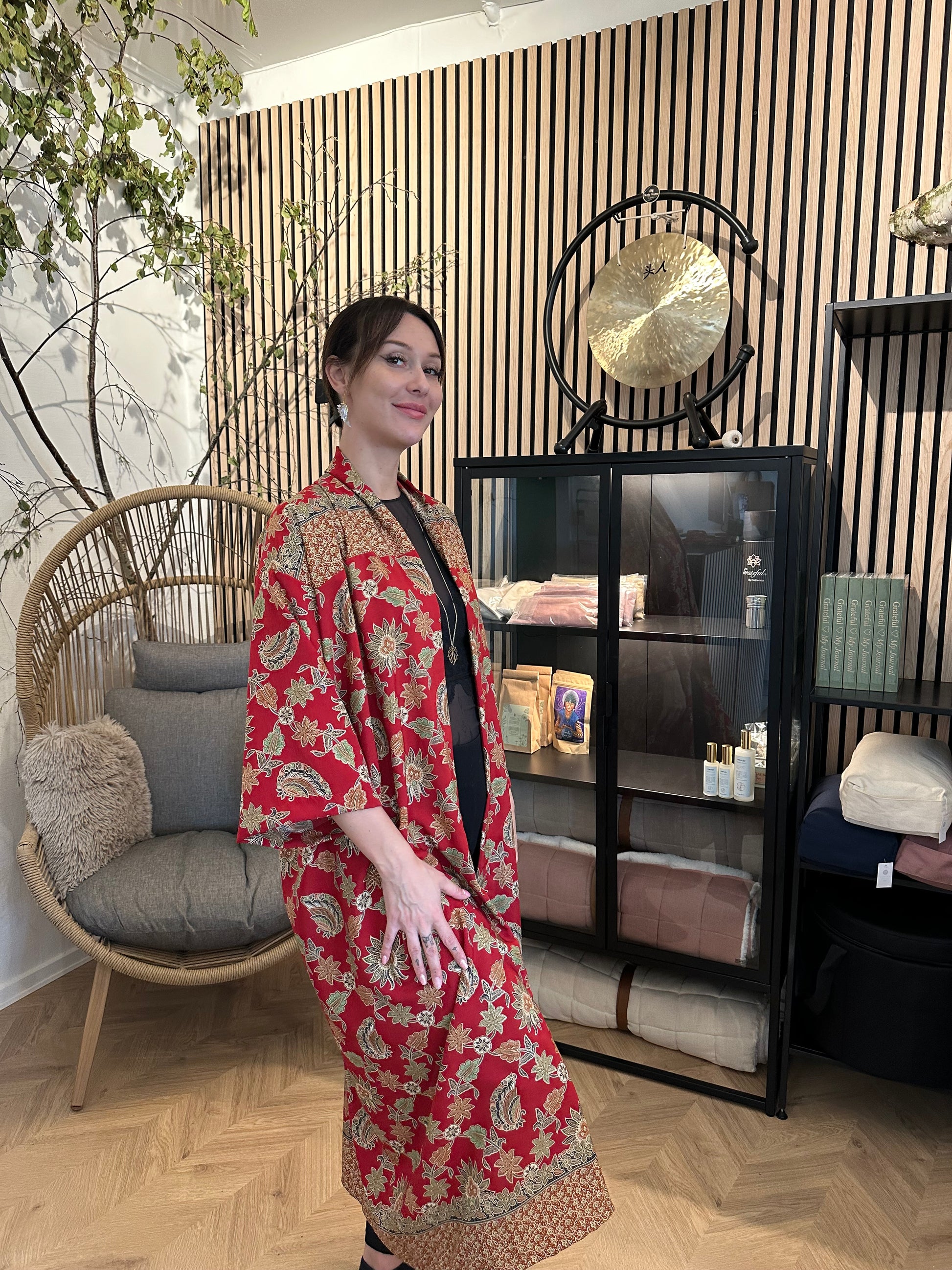 Alle vores kimonoer er købt direkte på Bali primært ved familier, som syer deres ting selv i deres butik. Oftes er deres butik kombineret med deres hjem, hvor hele familien hjælper til.
