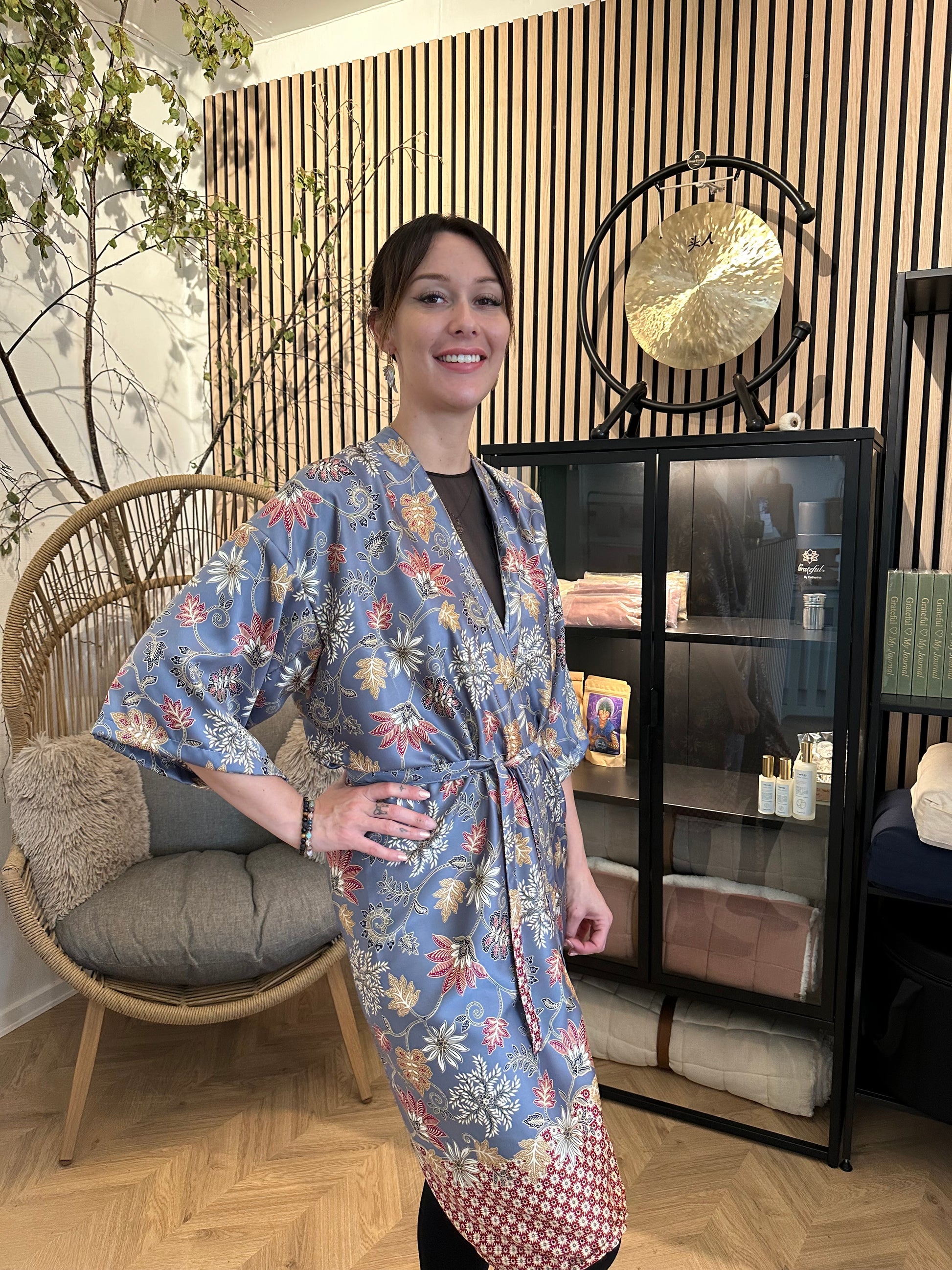 Alle vores kimonoer er købt direkte på Bali primært ved familier, som syer deres ting selv i deres butik. Oftes er deres butik kombineret med deres hjem, hvor hele familien hjælper til.