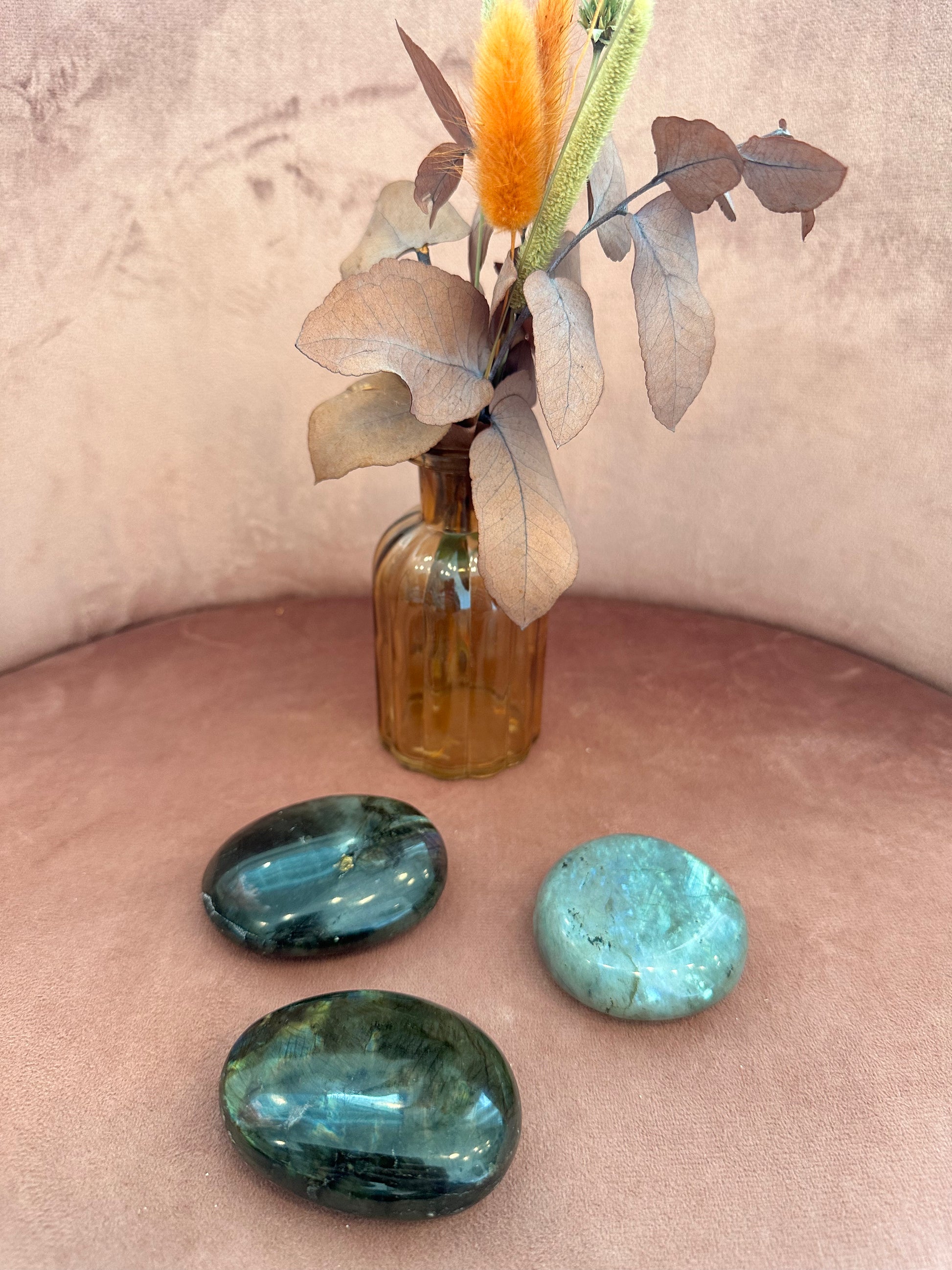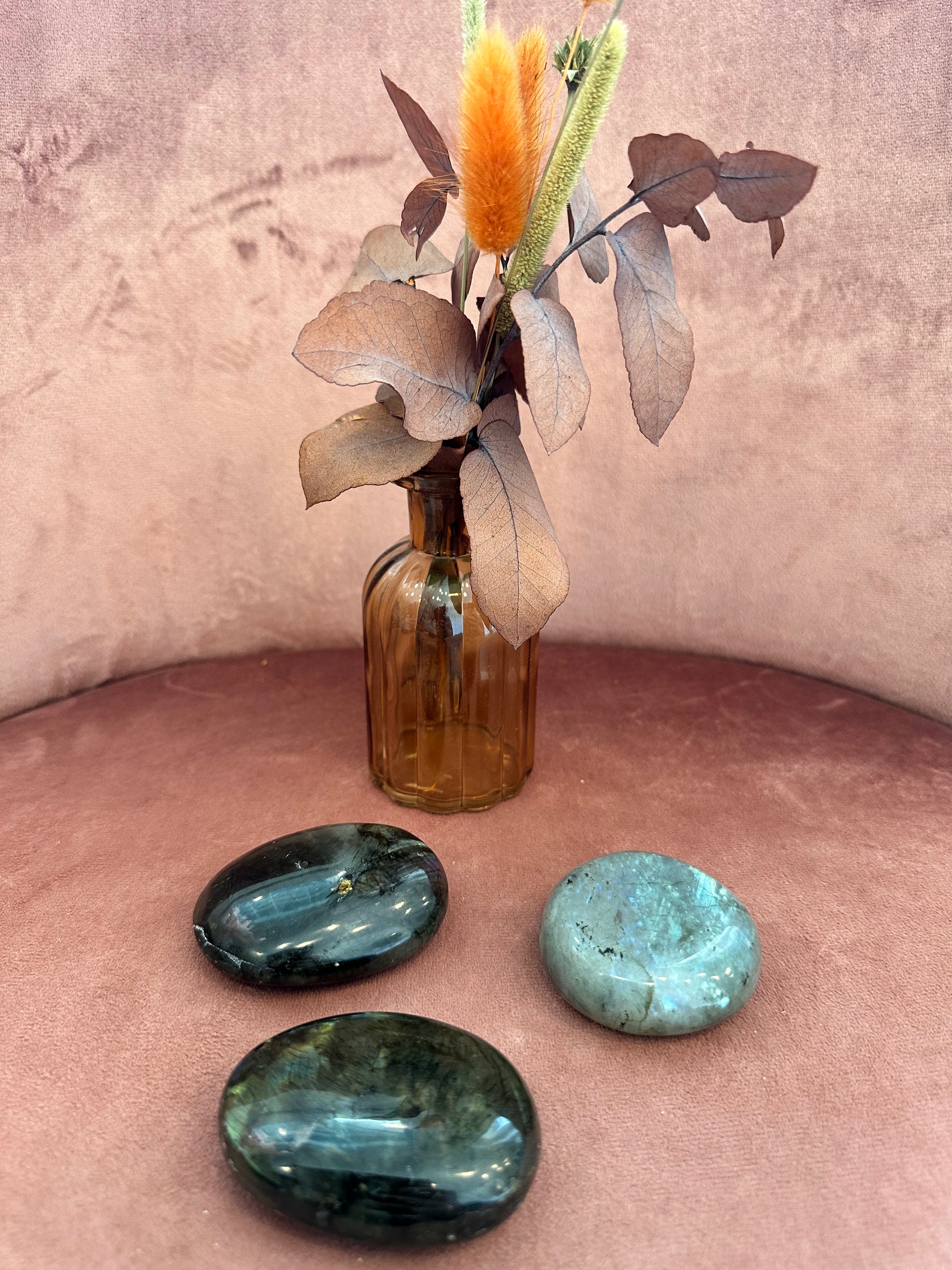 Labradorit spreder den dejligste energi ud i rummet og er en fantastisk spirituel sten. Den siges, at beskytte mod negative og tunge energier.