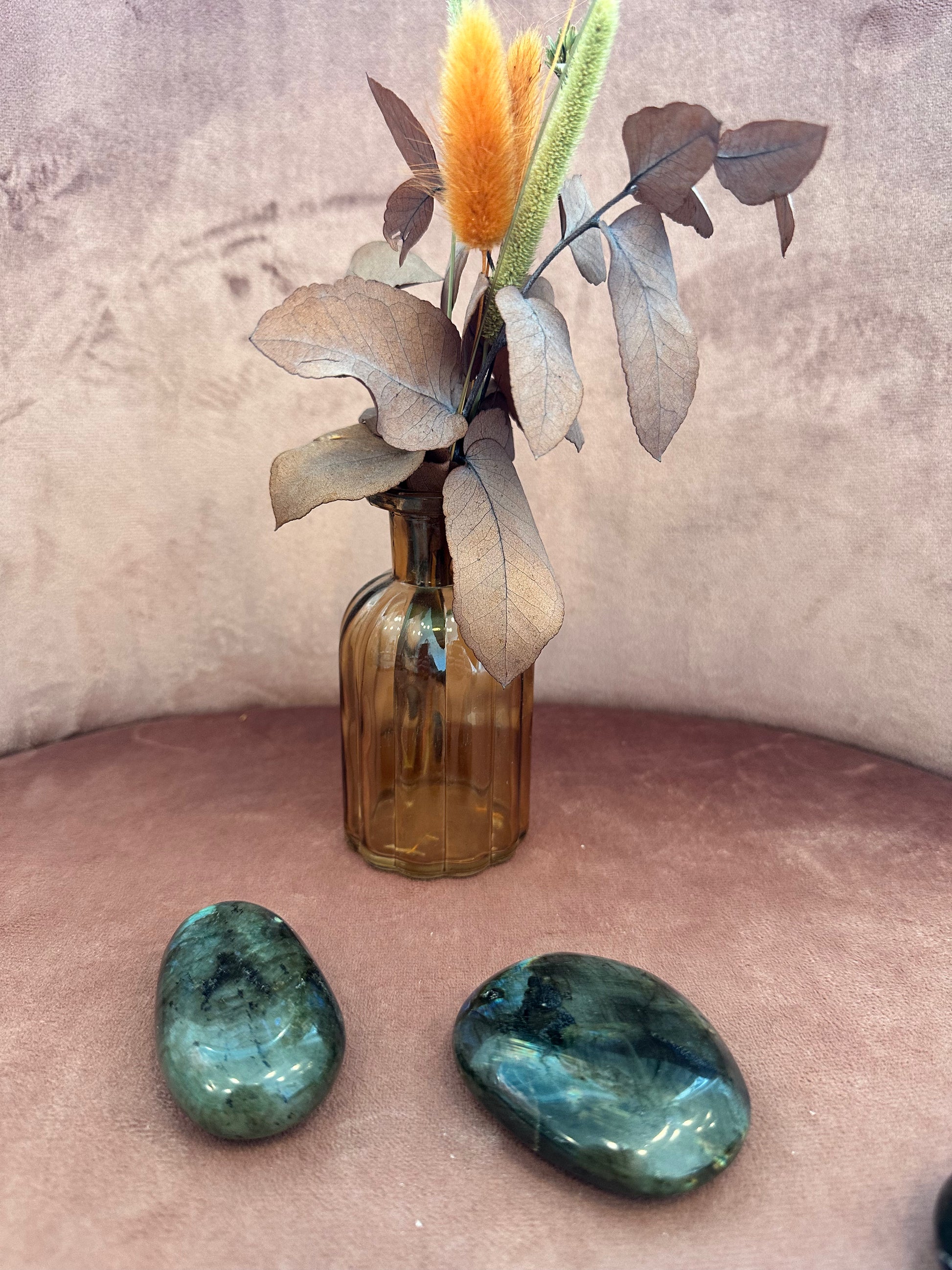Labradorit spreder den dejligste energi ud i rummet og er en fantastisk spirituel sten. Den siges, at beskytte mod negative og tunge energier.