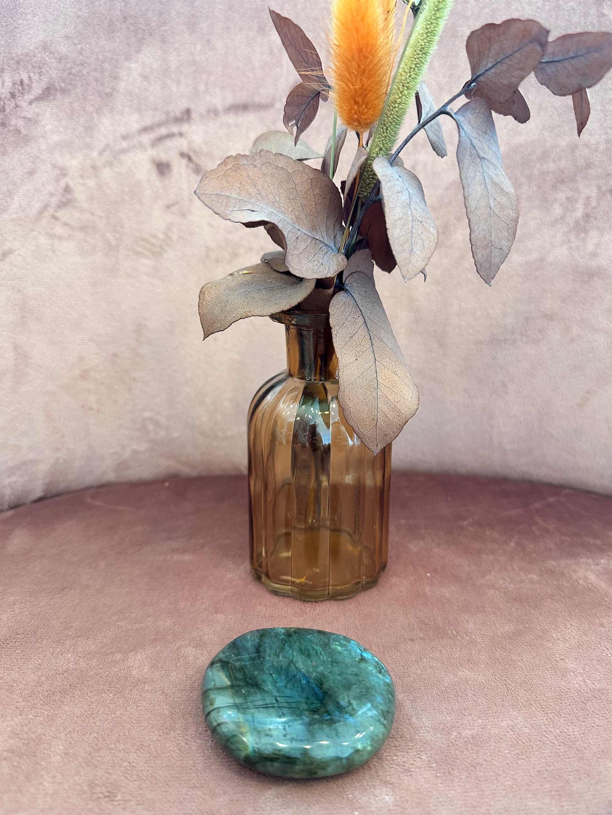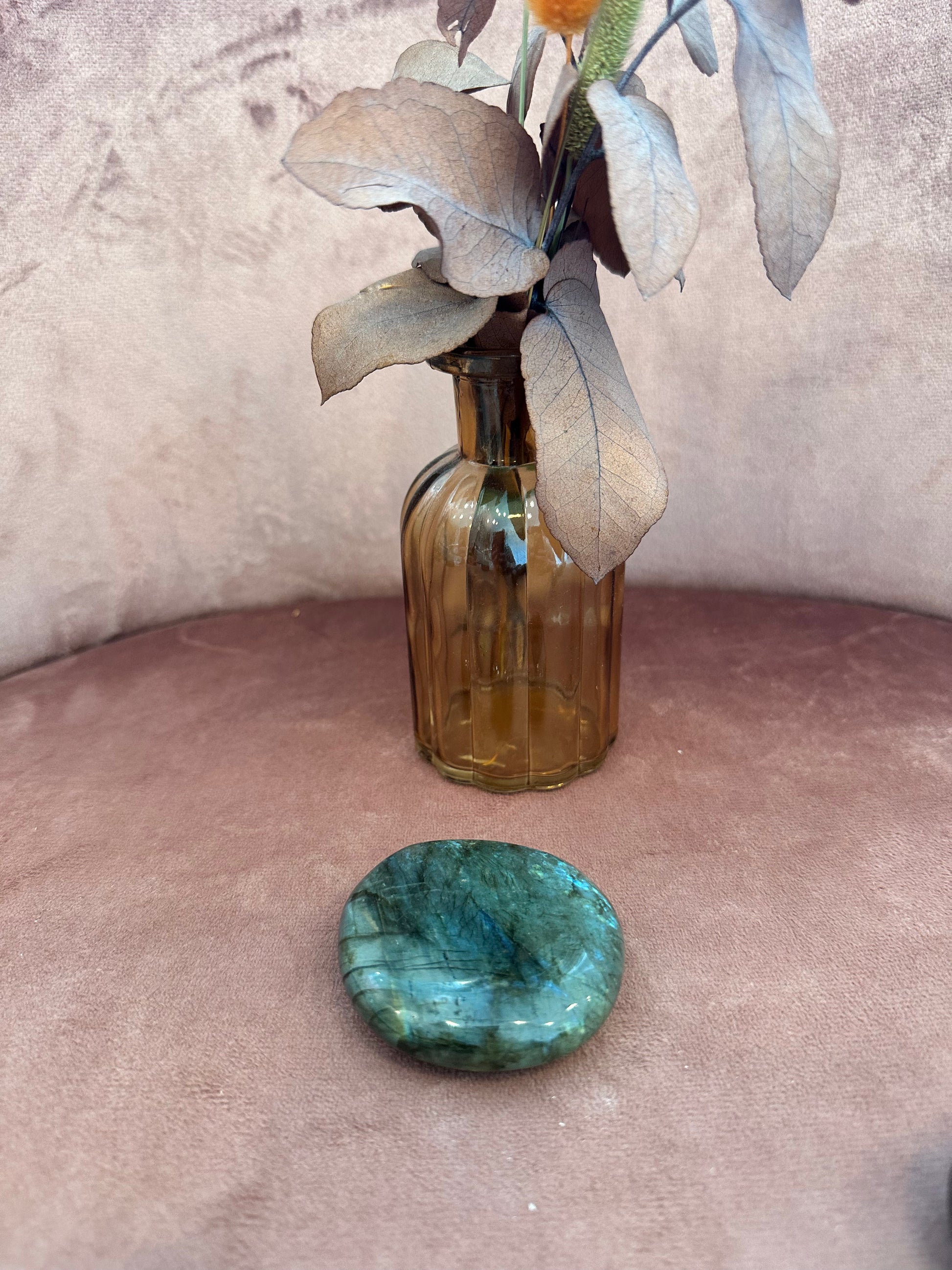 Labradorit spreder den dejligste energi ud i rummet og er en fantastisk spirituel sten. Den siges, at beskytte mod negative og tunge energier.
