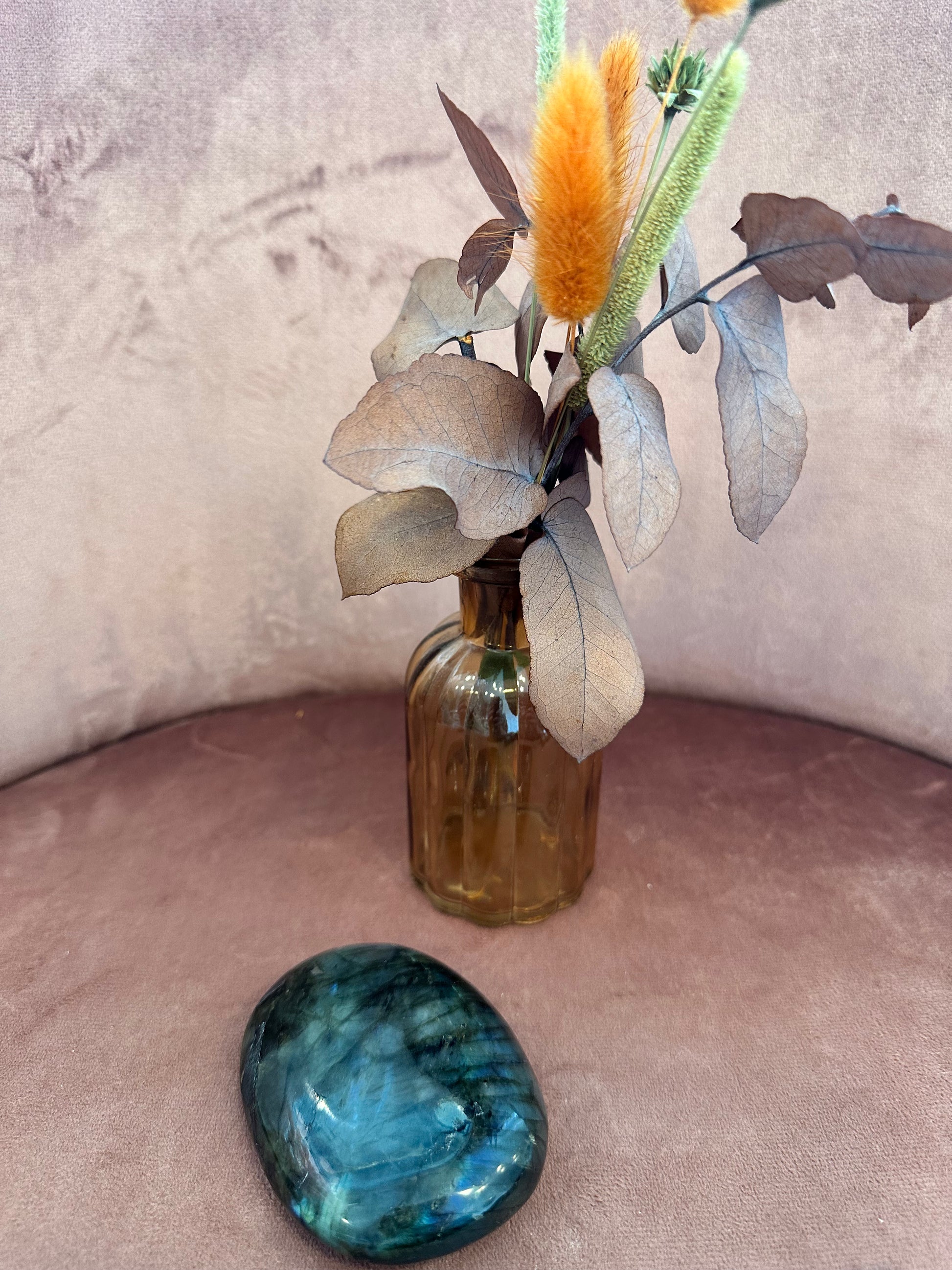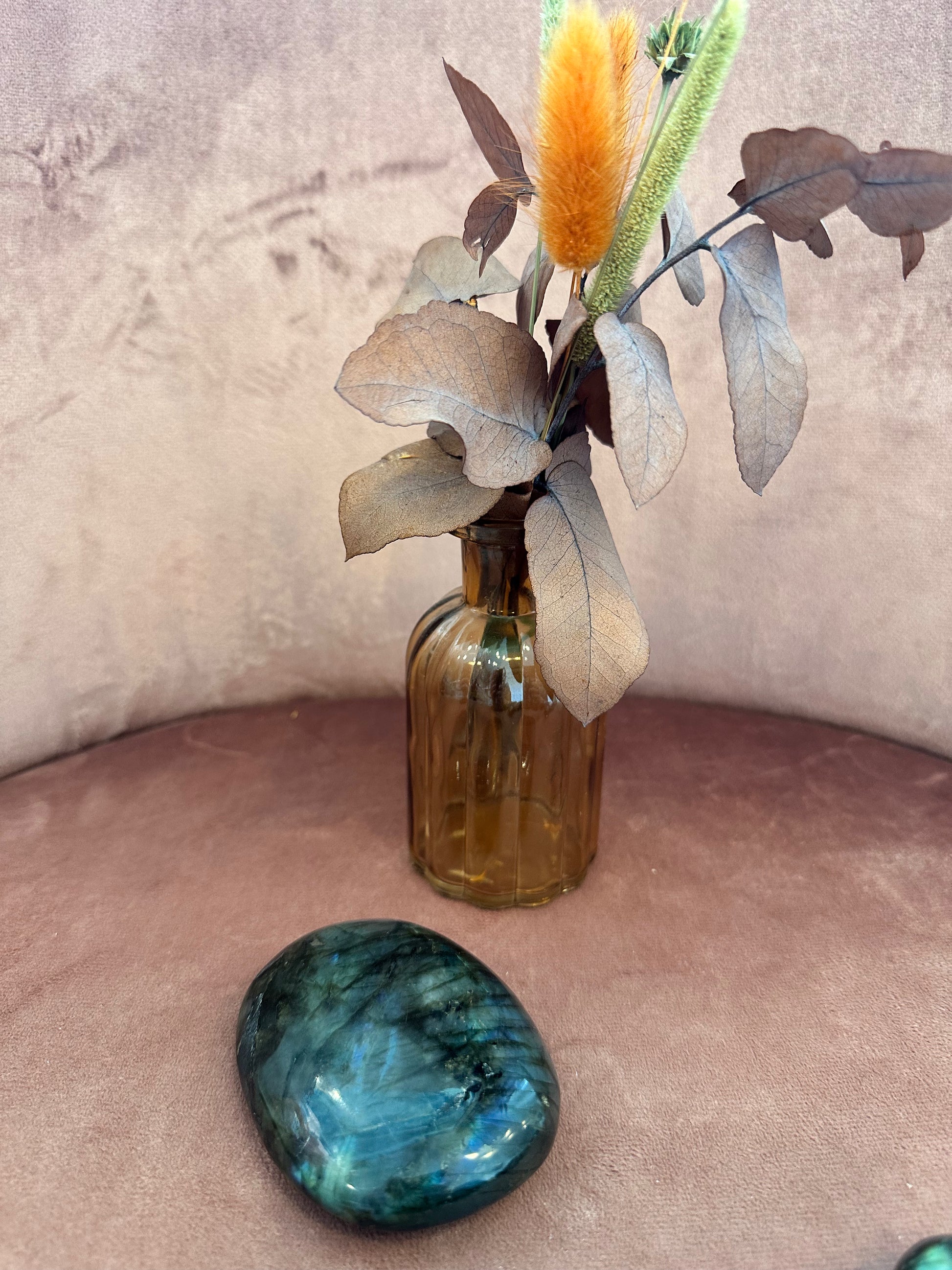 Labradorit spreder den dejligste energi ud i rummet og er en fantastisk spirituel sten. Den siges, at beskytte mod negative og tunge energier.
