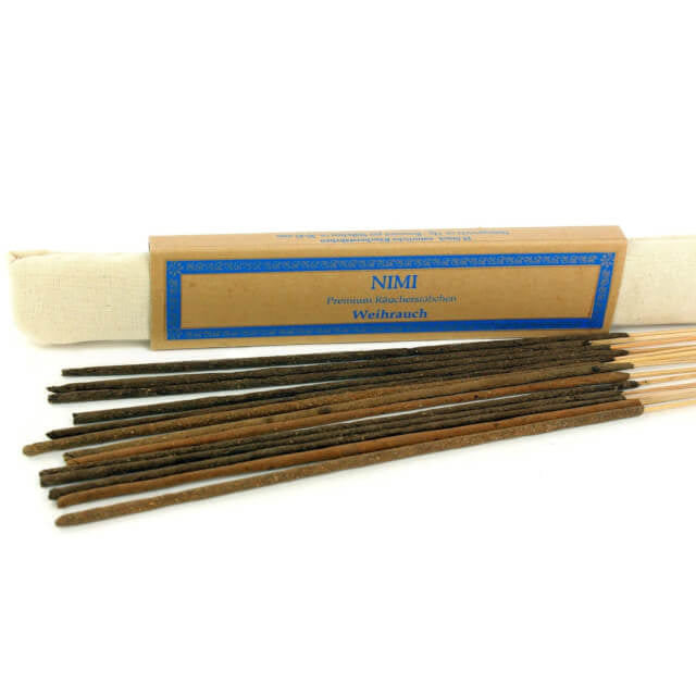 Røgelsespindene fra Nimi Premium Ayurveda er rensende og afklarende. Med værdifuld Olibanum-, cedertræ og geraniumolie.