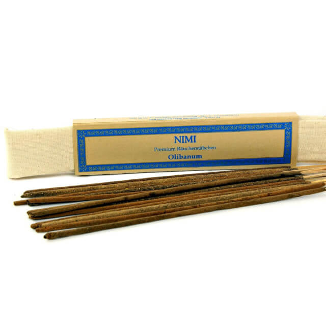 Nimi Ayurveda Røgelse Olibanum er ideelle til meditation. De indeholder kolofonium, Olibanum- og patchouli i en base af vetiver, cedertræ, kanel, patchouliblade, jasminblomster, champablade, muskulatur, nellikeknopper, rosenknopper, muskatnød, citrongræs, citron, appelsinskal, benzentræsaft, Olibanum-harpiks, myrraharpiks og Labdanum-harpiks.