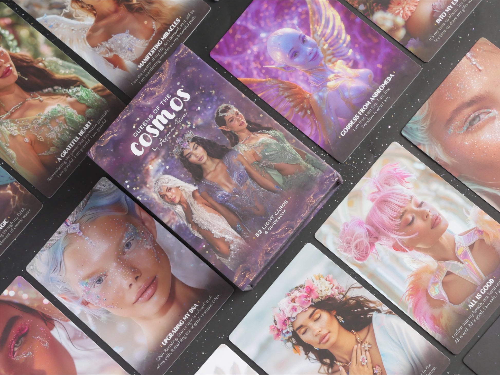 Queens of the Cosmos er et orakelsæt med 52 kort, skabt til at aktivere dit kosmiske DNA og forbinde dig til din sjæls visdom. Hvert kort bærer et dybt budskab, der er designet til at udvide din bevidsthed.