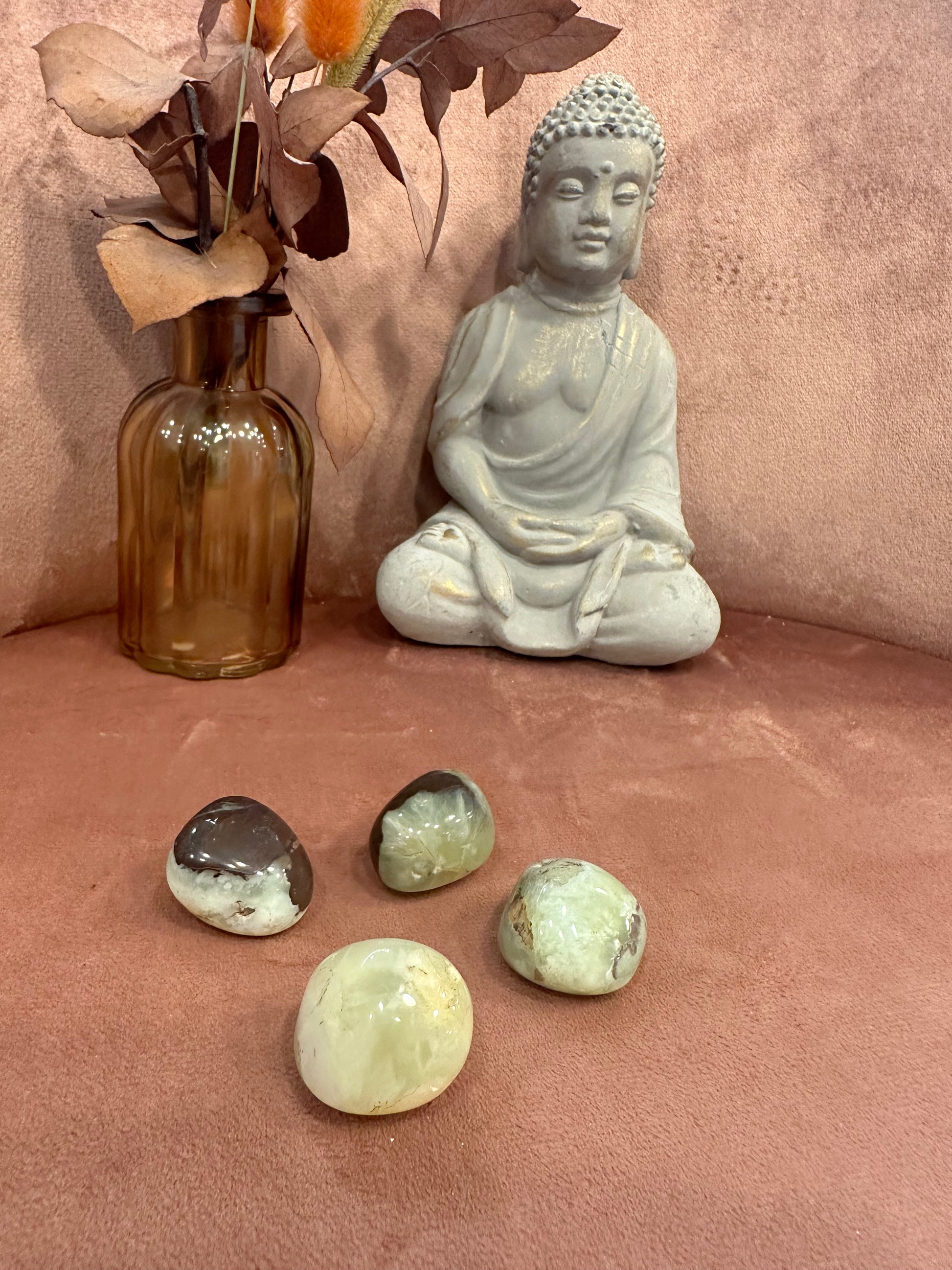 Prehnit Matrix er en kærlig healer, der skaber forbindelse til din sjæl.