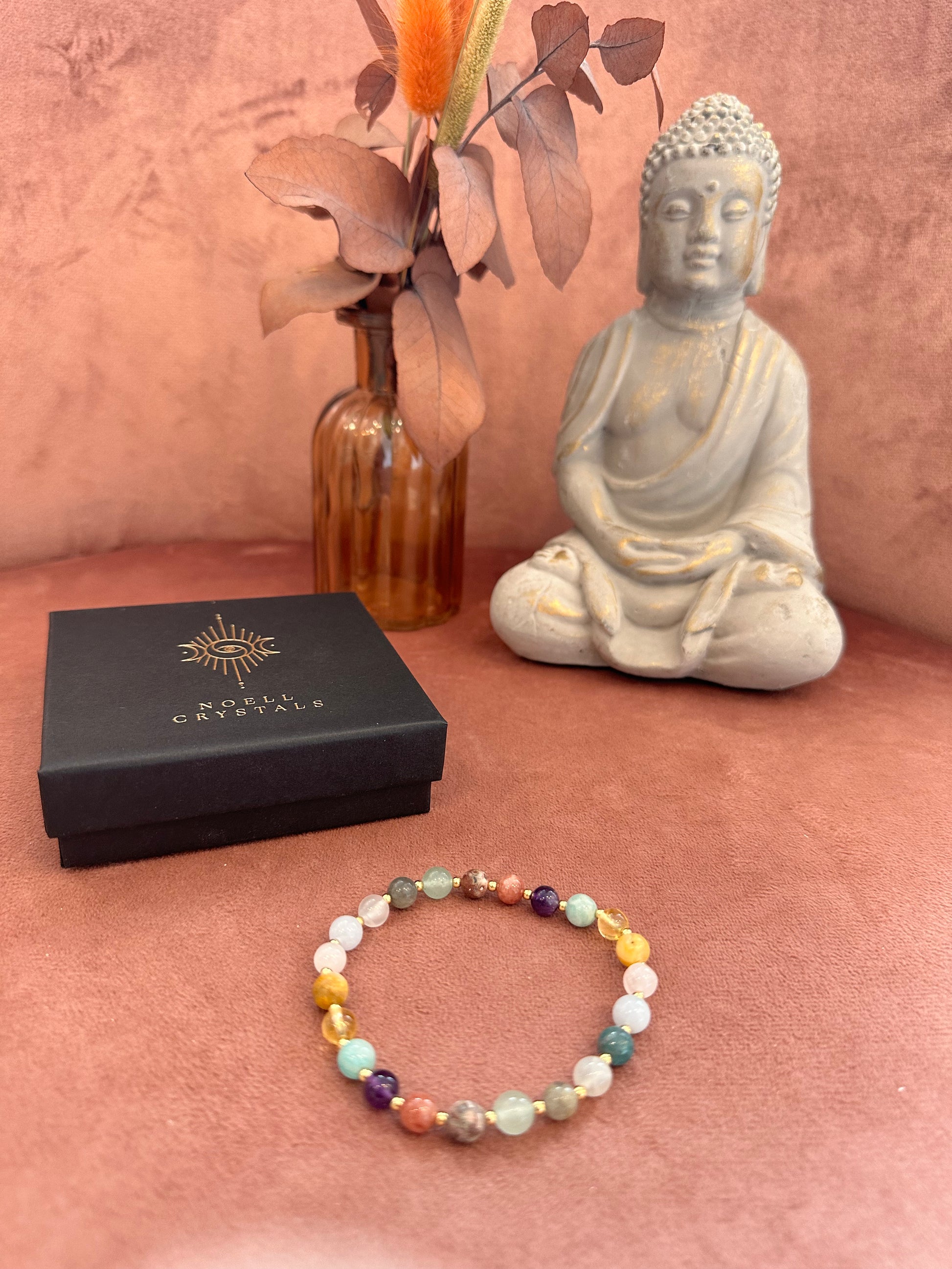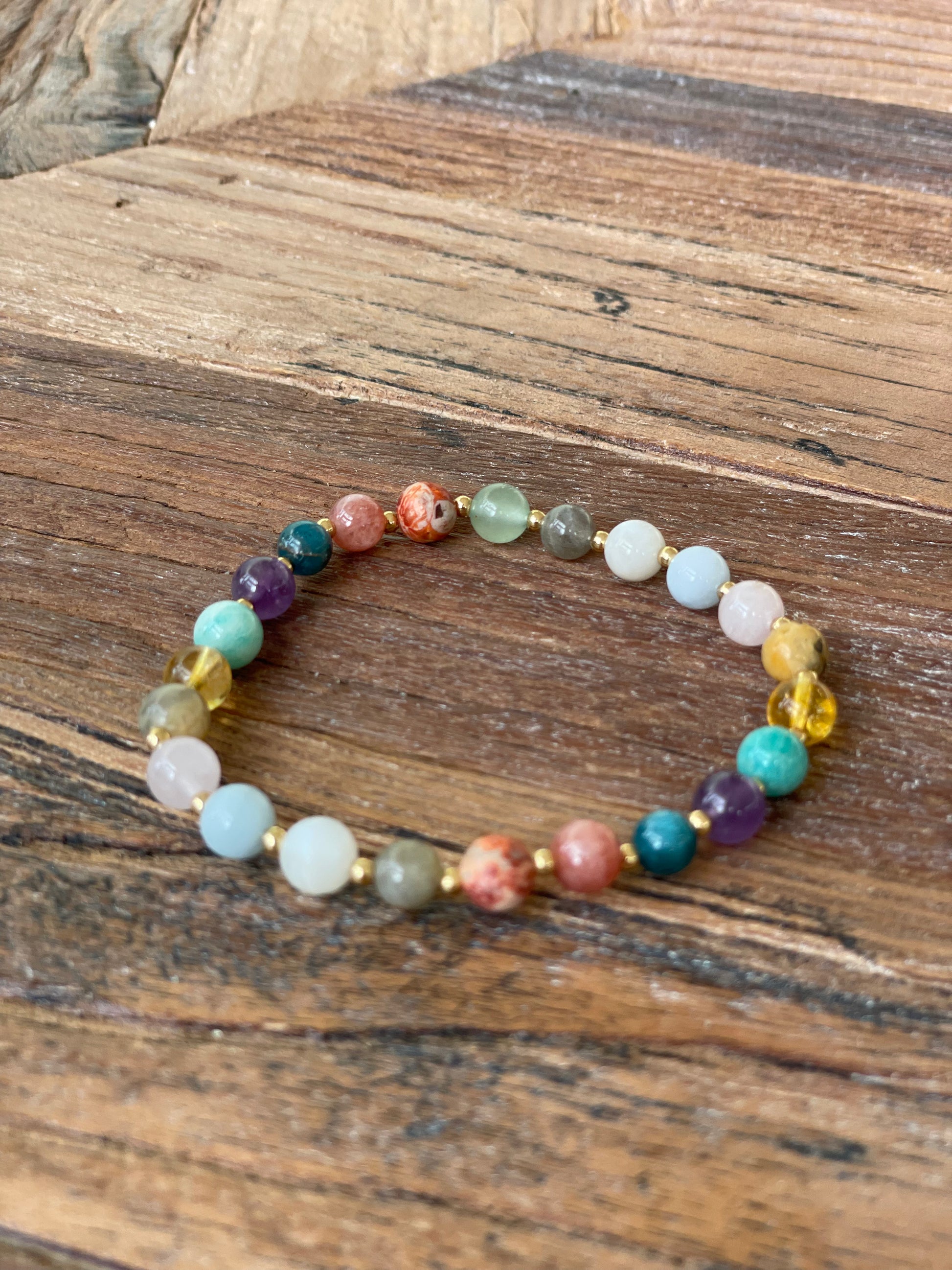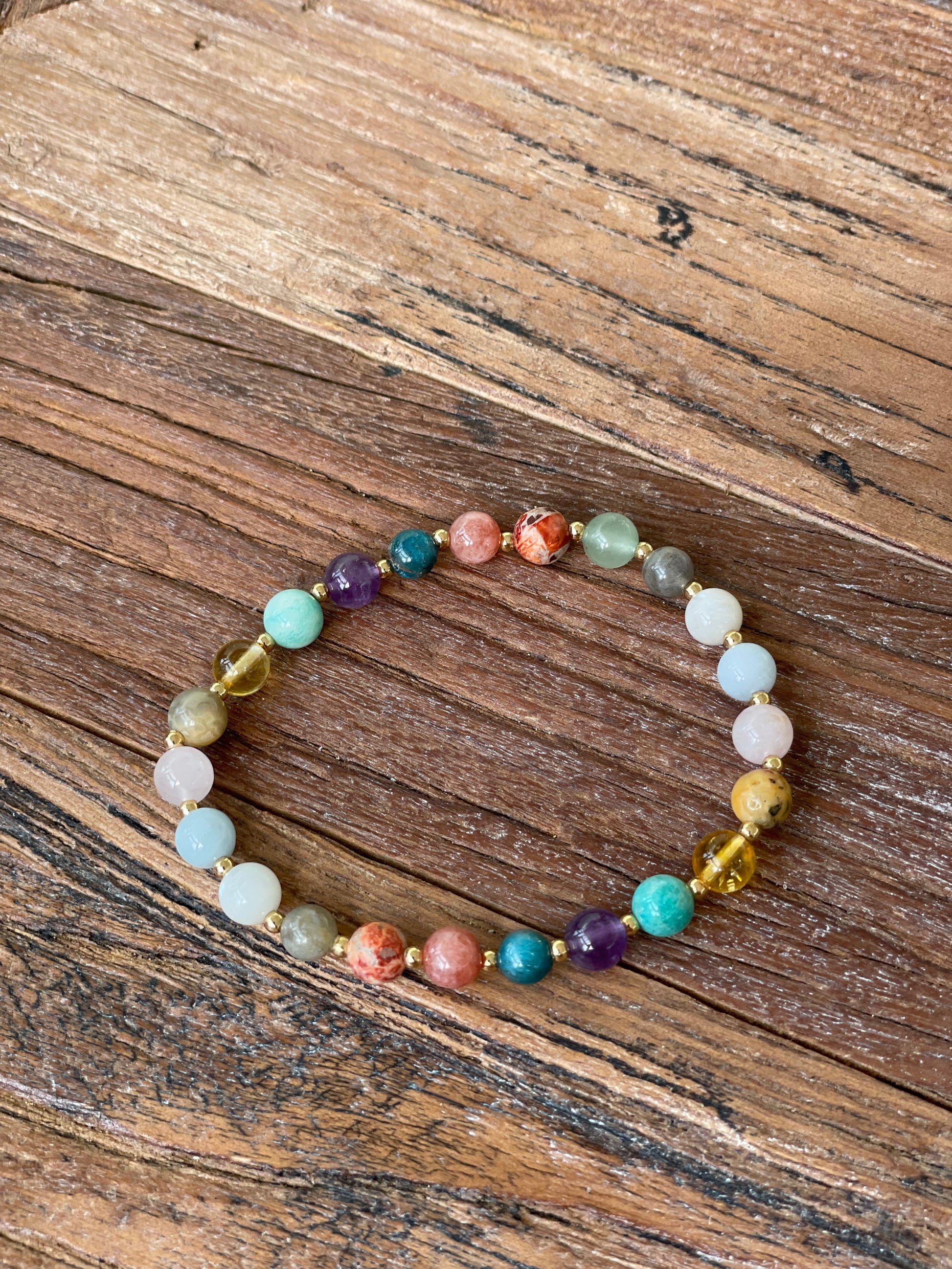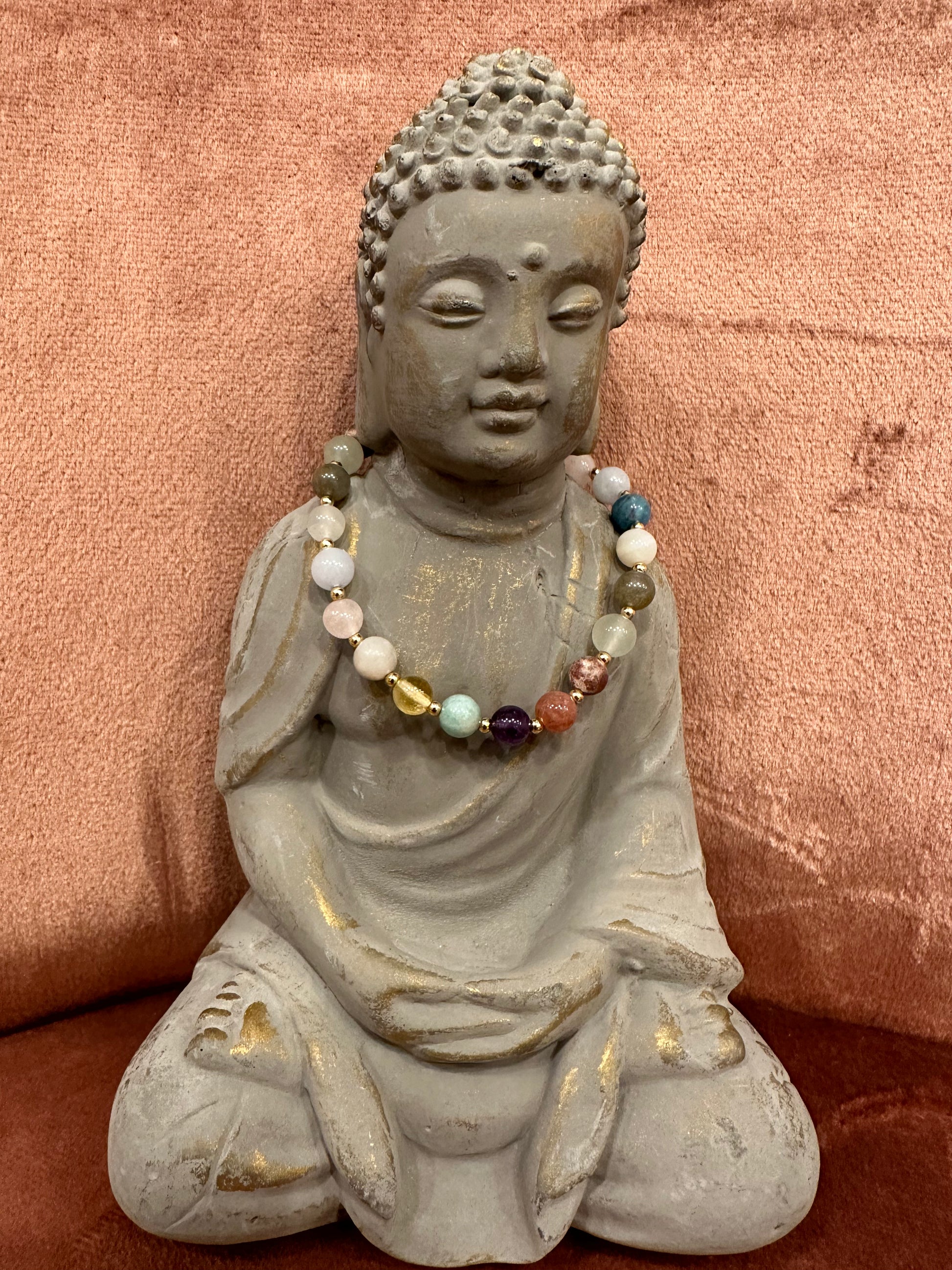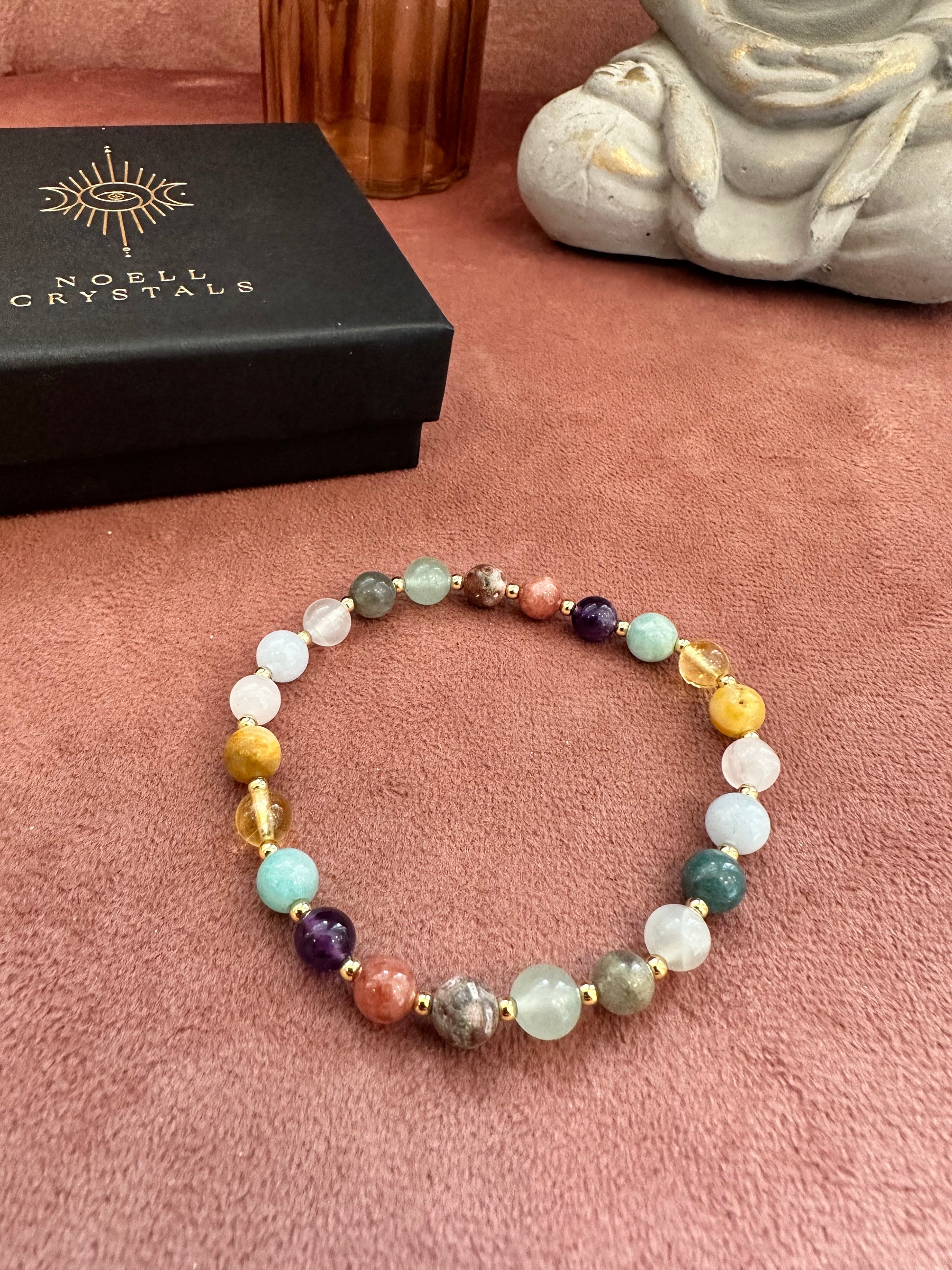 Mal dit liv med energierne fra Solsten, Citrin, Apatit, Leopard Jaspis, Akvamarin, Månesten, Labradorit, Crazy Agat, Amazonit, Ametyst, Rosenkvarts & Aventurin.