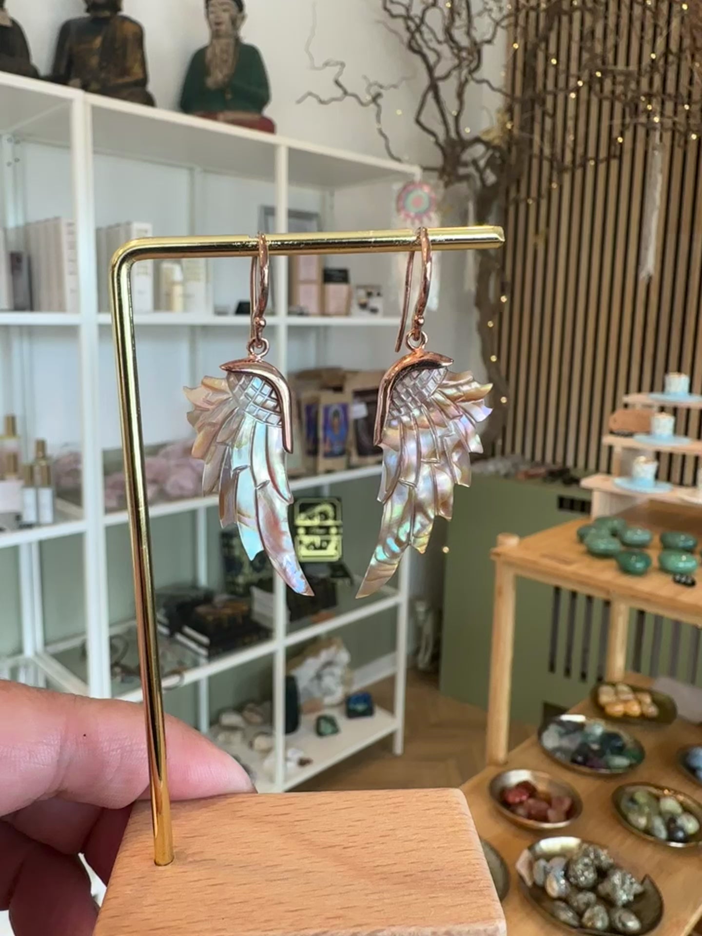 Vingerne er håndudskåret i over 7 timer af bæredygtigt fremskaffede abaloneskaller fra en perlefarm på Bali.