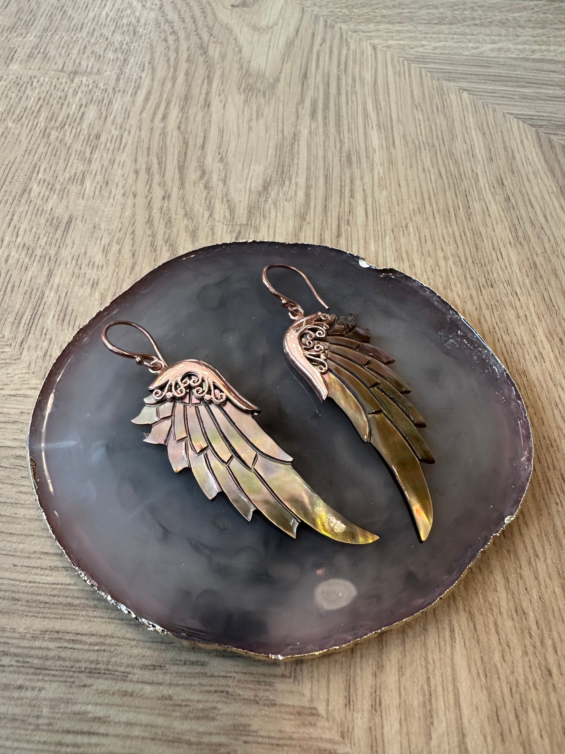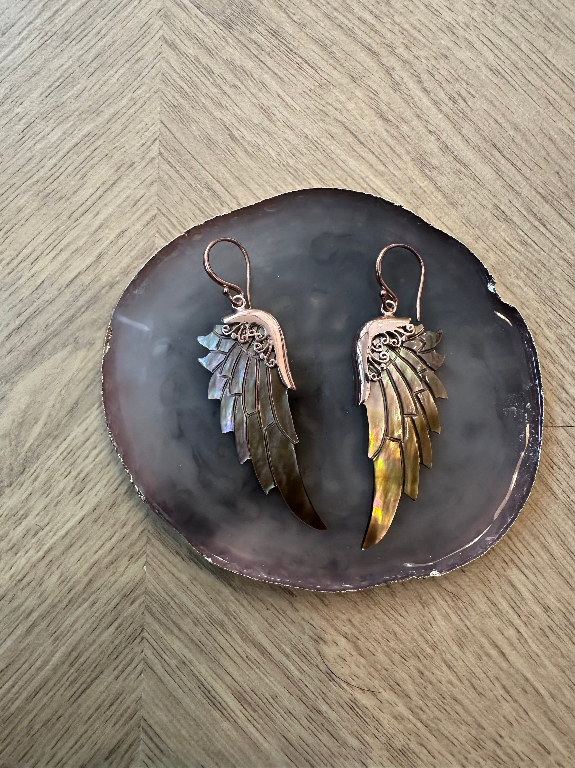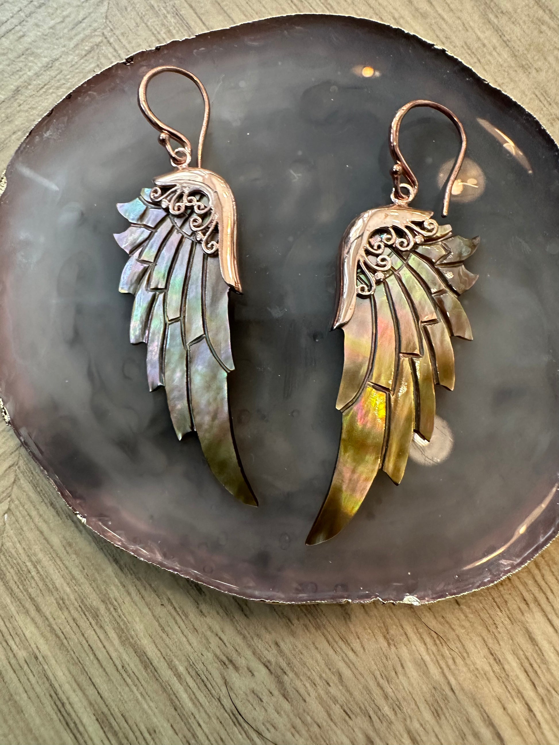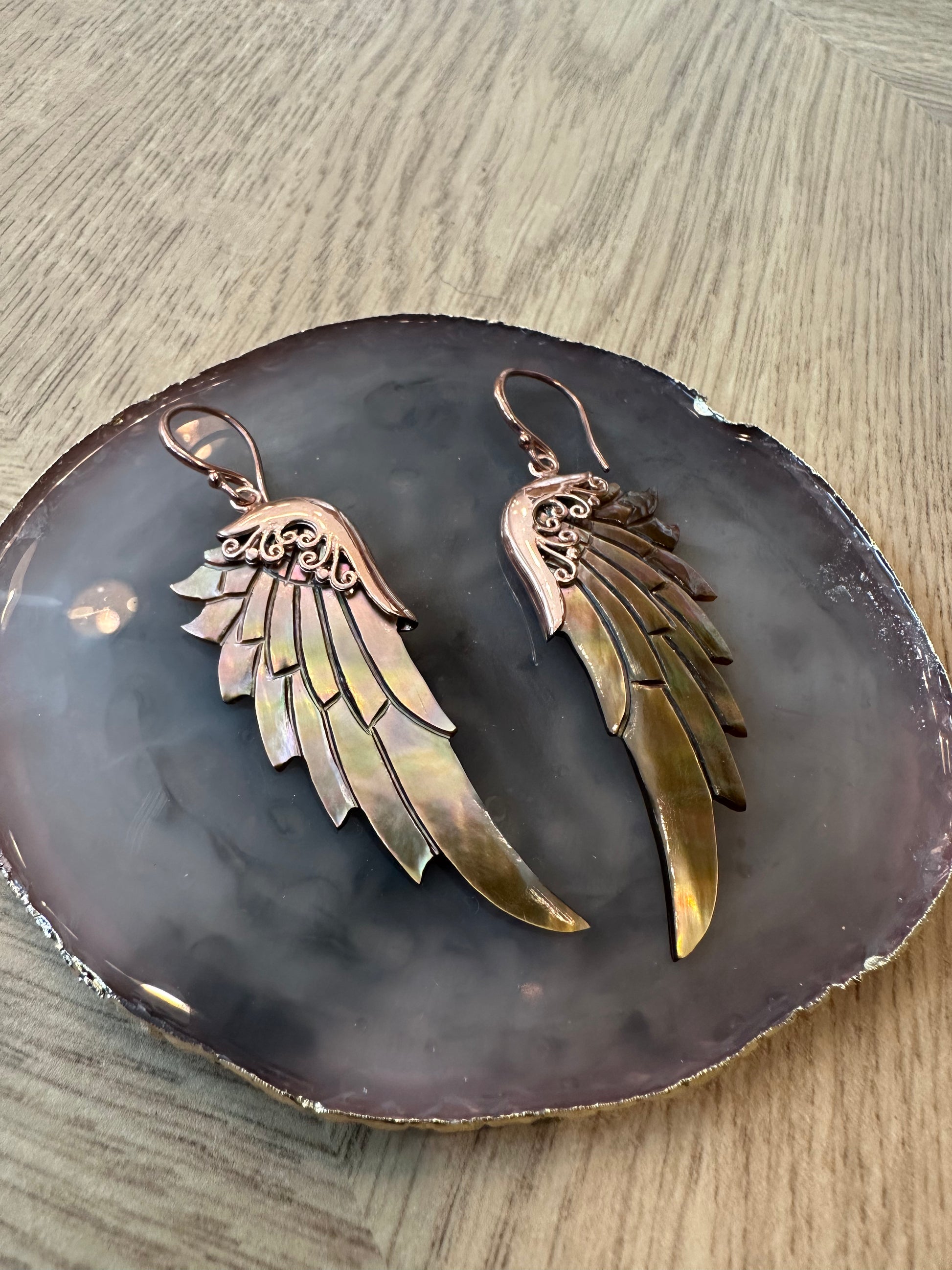 Disse bæredygtigt fremskaffede abalone skaller øreringe er håndskåret i over 8 timer og derefter udstyret med sterling sølv detaljer og dyppet i 3 mikron rosa guld med en ekstra nano belægning for beskyttelse.
