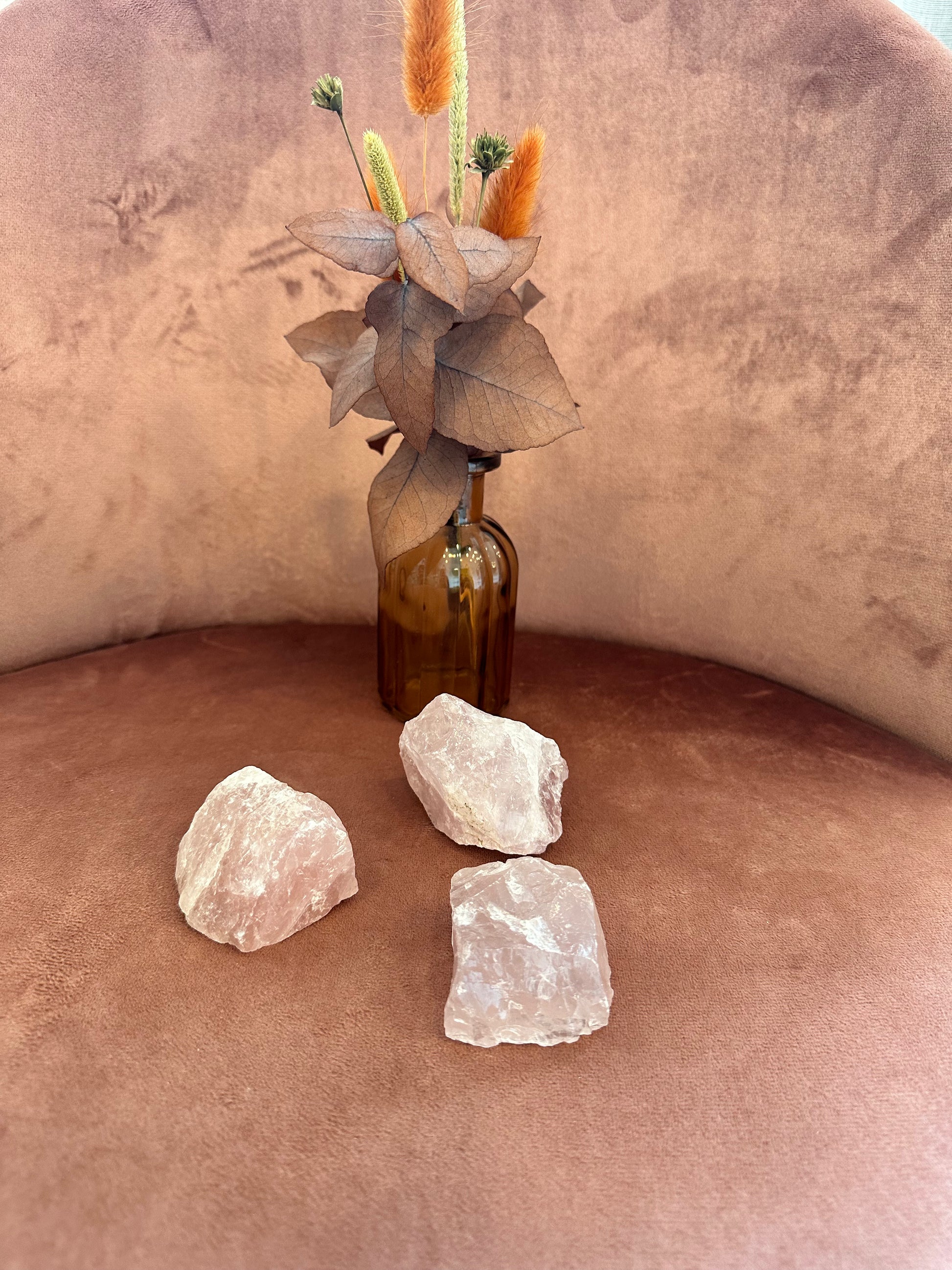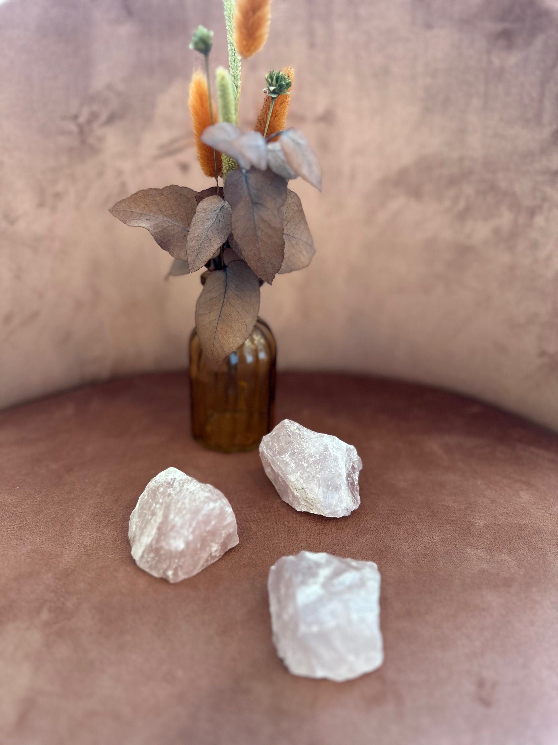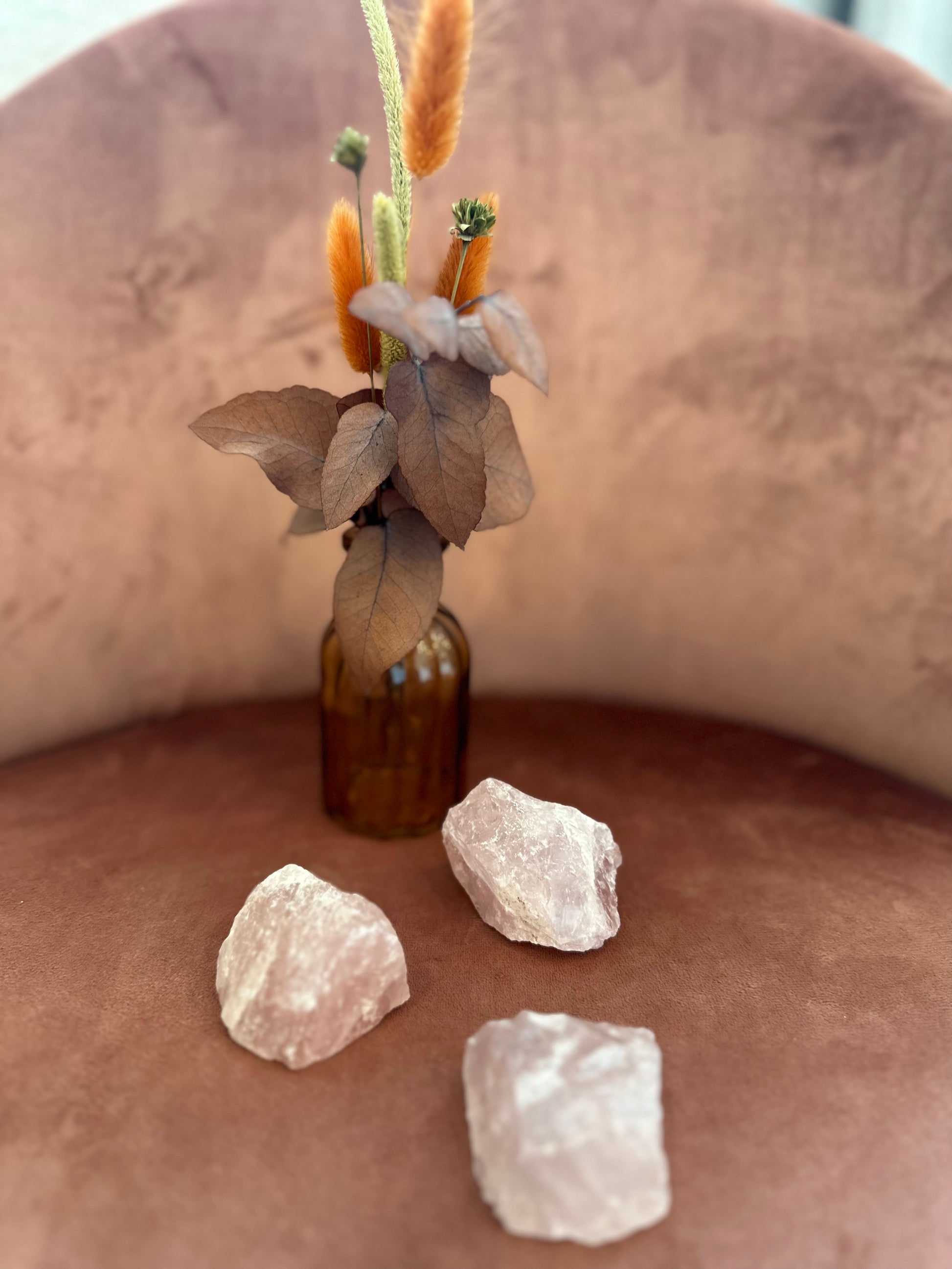 Rosenkvarts sammen med Bjergkrystal, Ametyst & Selenit, vibrerer med energier, der vil gavne alle hjem.