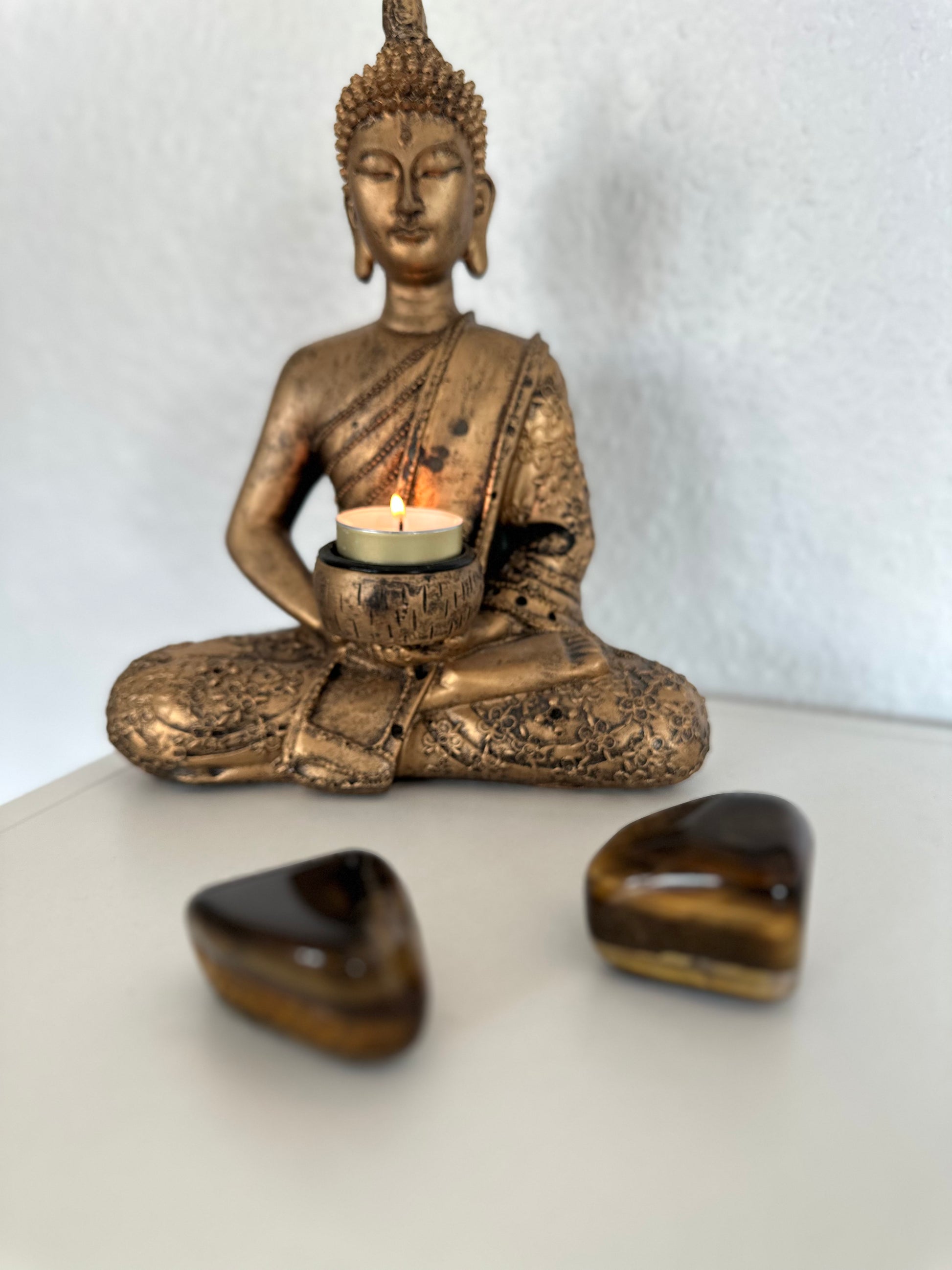 Tigerøje er en enormt kraftfuld krystal, som styrker dig i at handle og giver dig fokus, koncentration og opmærksomhed. Den kan også bruges mod bekymringer, og styrker dig til at komme videre og den er god, hvis du har udfordringer med selvværd, selvkritik og blokeret kreativitet.